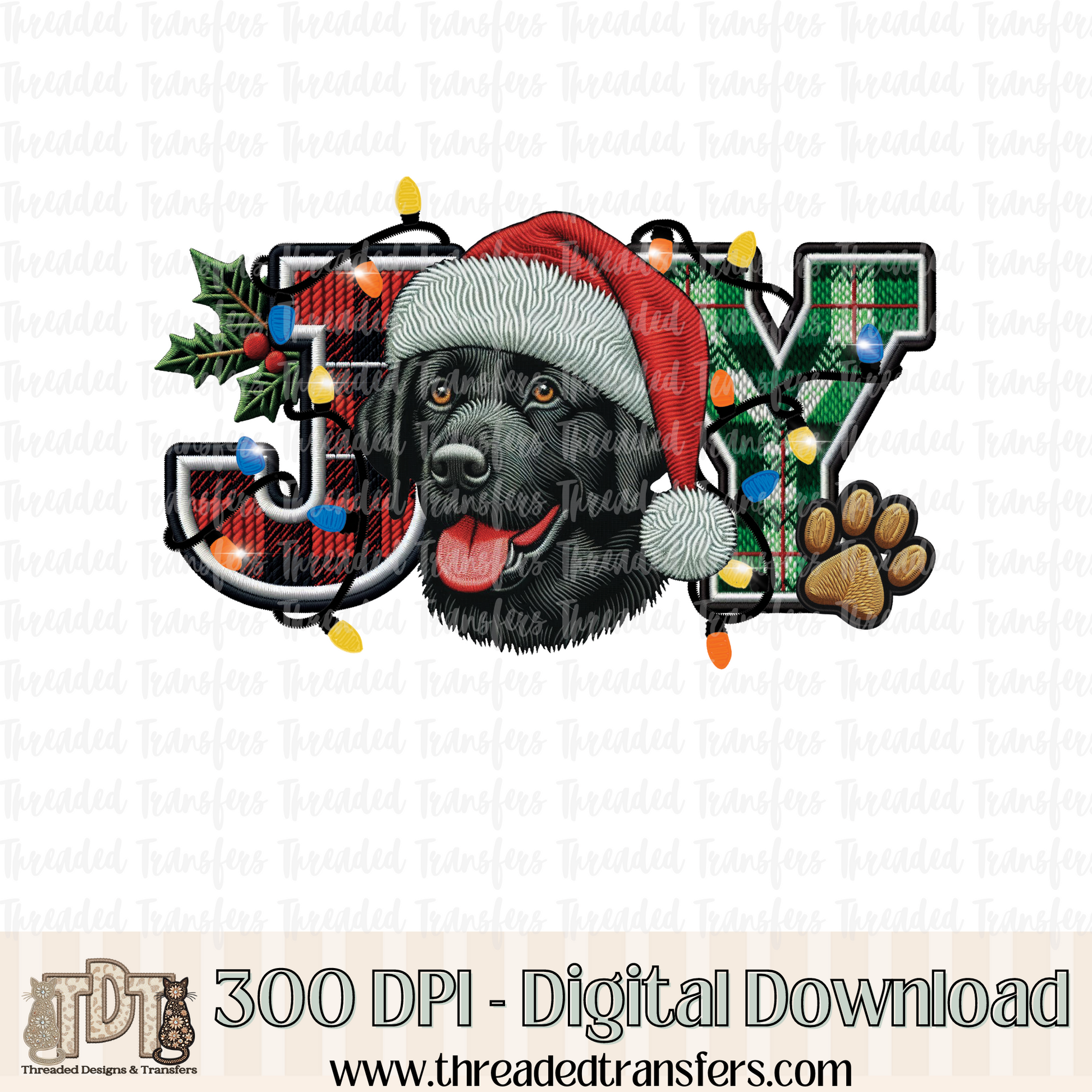 Black Labrador Retriever Joy Faux Embroidery Digital Design Download (PNG Format - no product shipped)