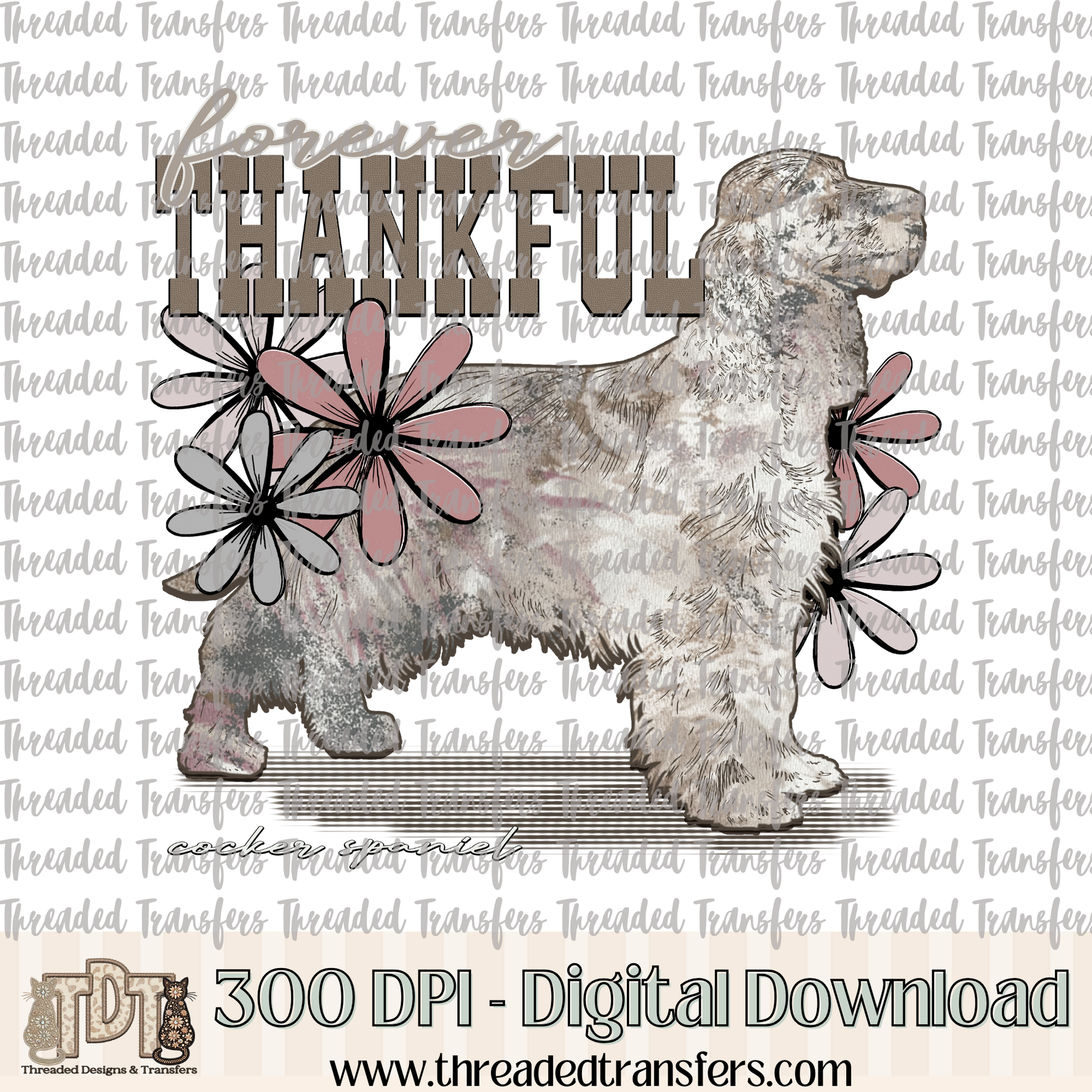 Forever Thankful Cocker Spaniel Digital Design Download (PNG Format - no product shipped)