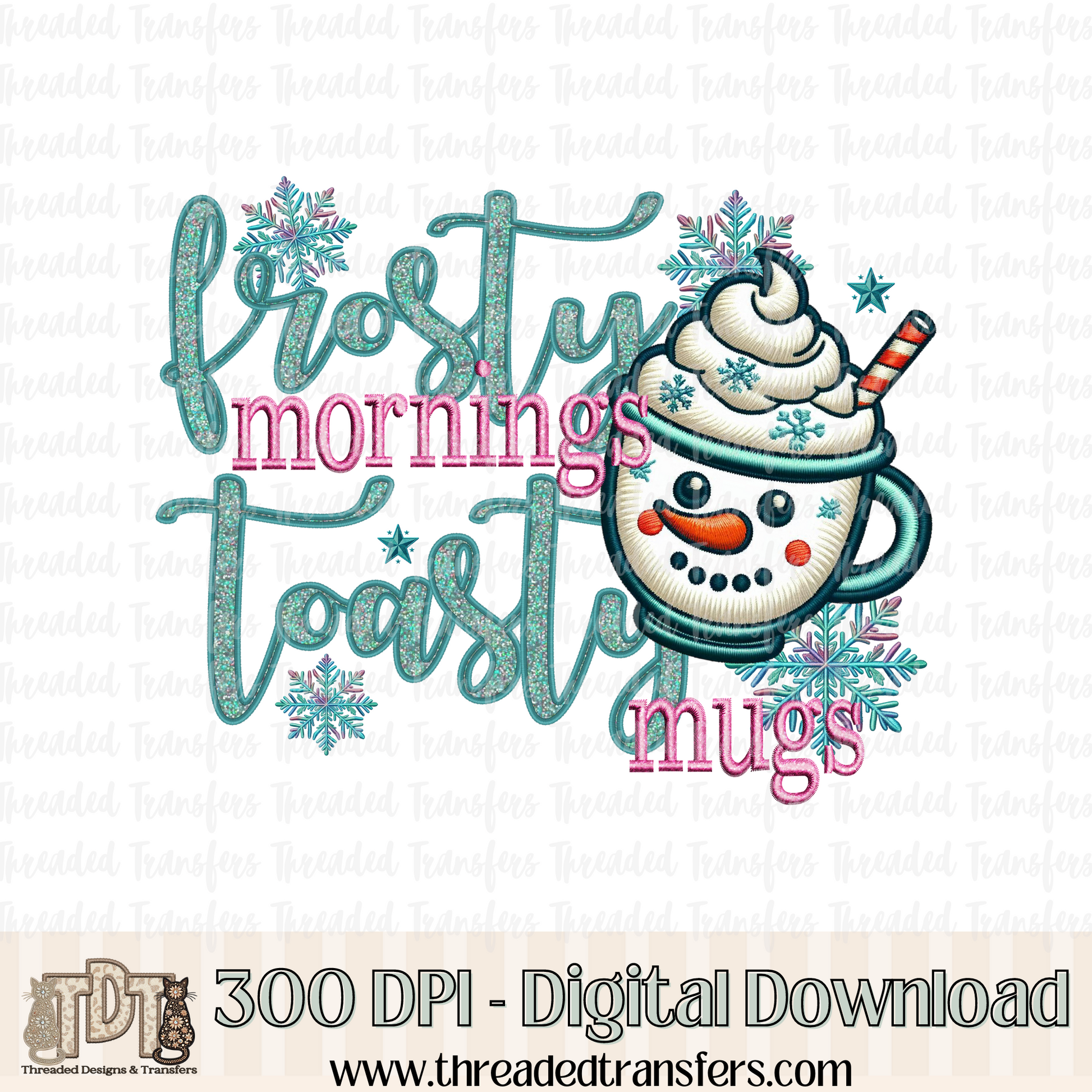 Frosty Mornings Toasty Mugs Faux Embroidery Digital Design Download (PNG Format - no product shipped)