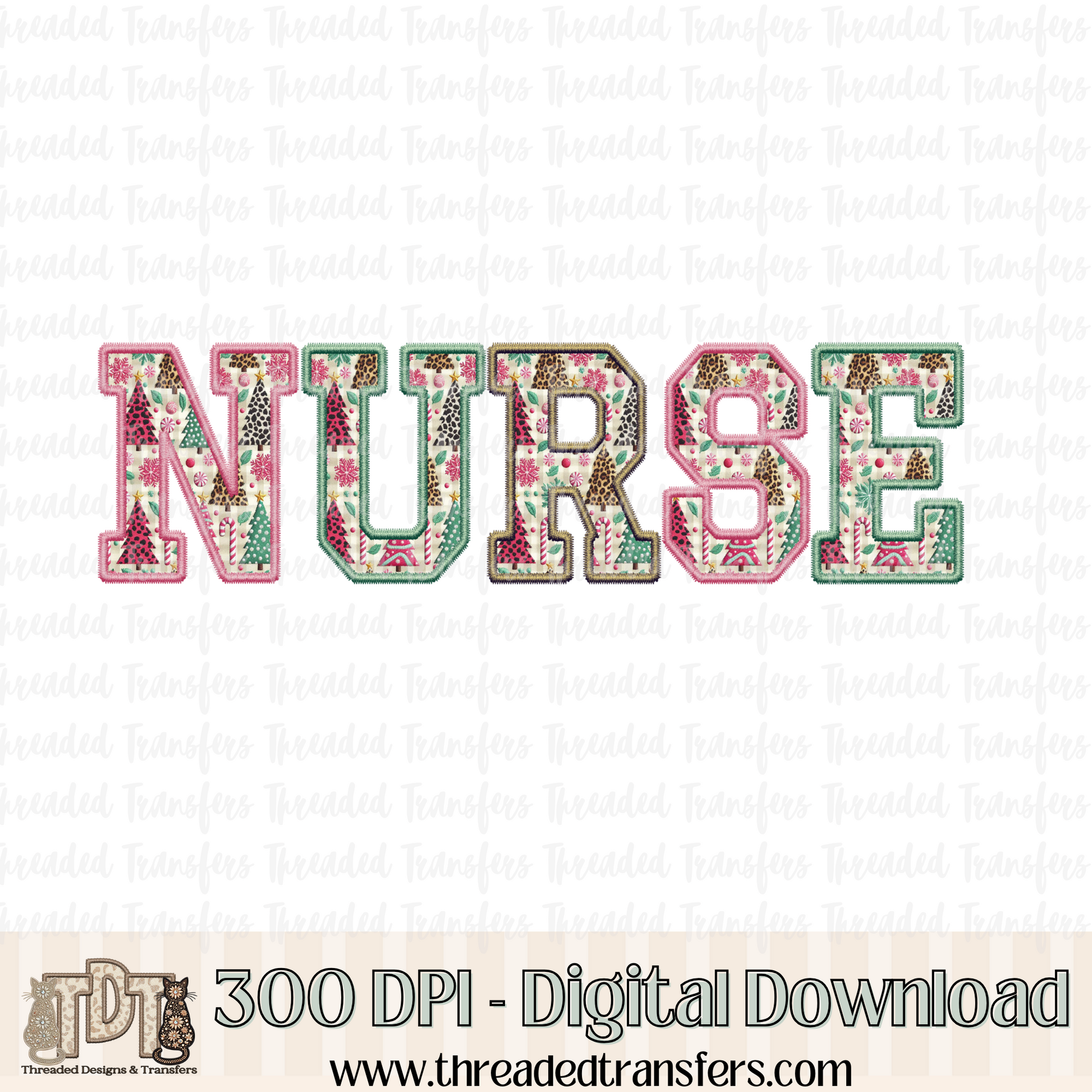 Nurse Christmas Fun Faux Embroidery Digital Design Download (PNG Format - no product shipped)