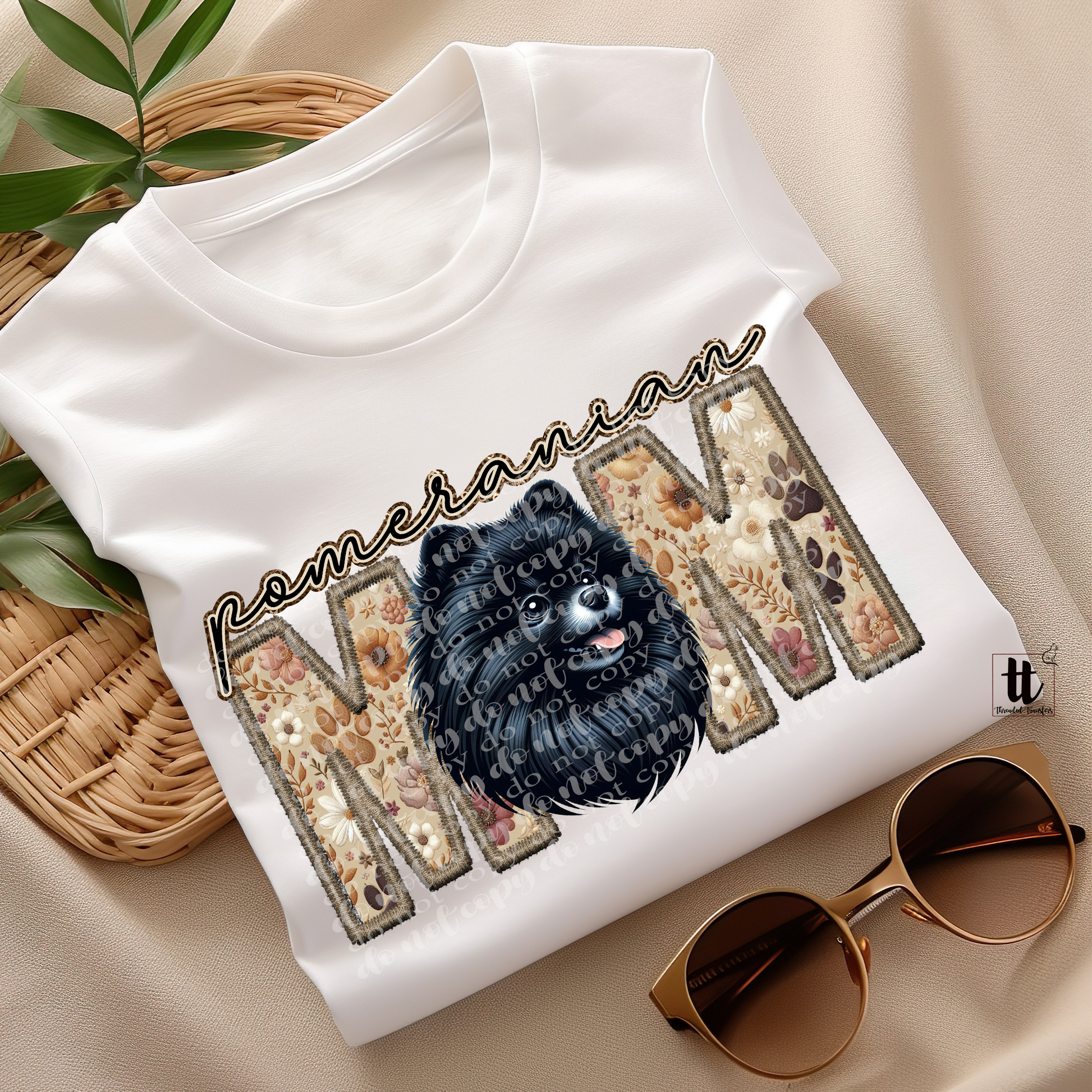 Pomeranian Mom- Black Faux Embroidery & Faux Sparkle DTF Transfer