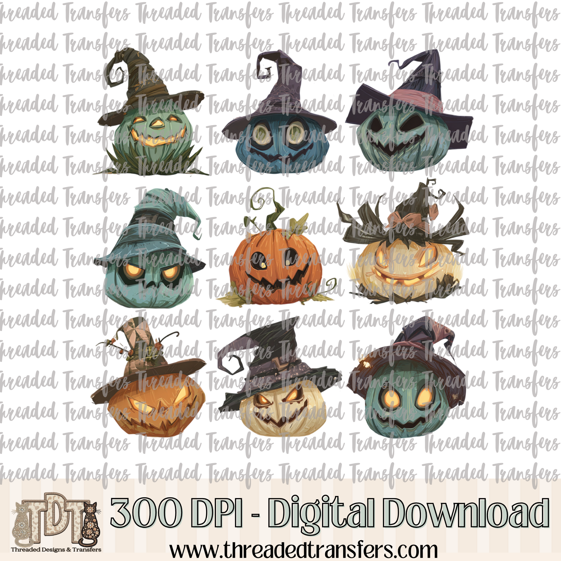 Spooky Jack O'Lanterns Digital Design Download (PNG Format - no product shipped)