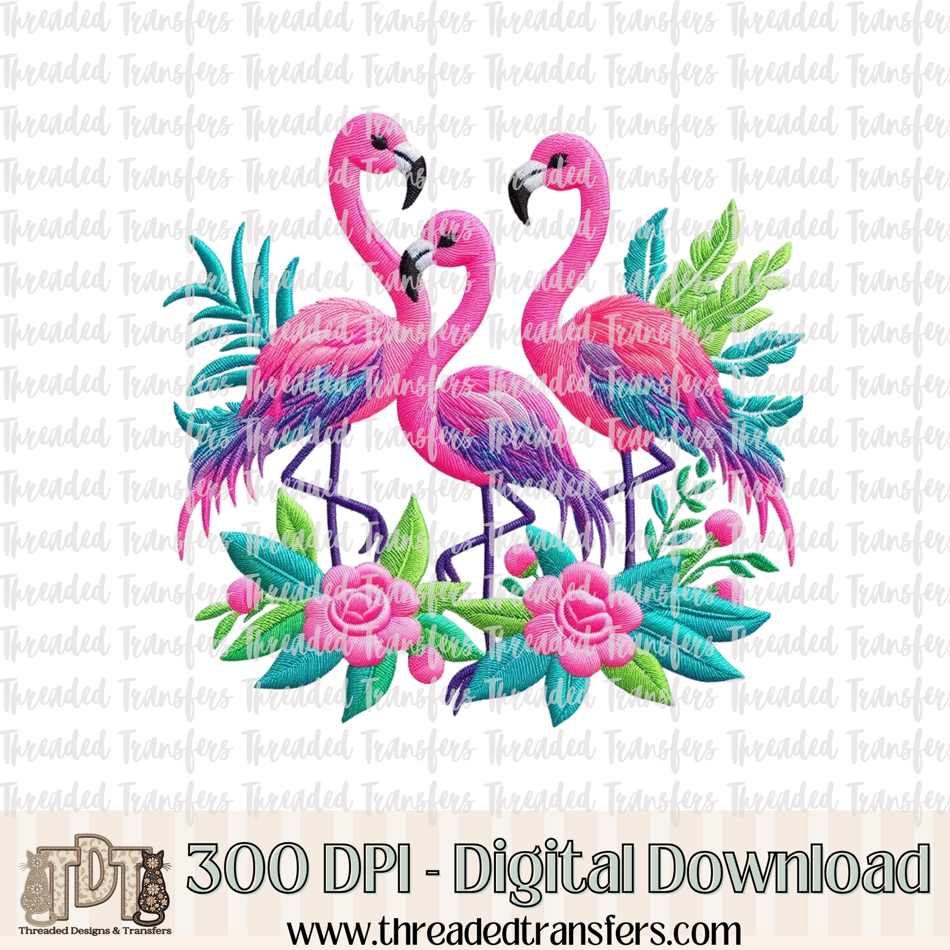 Vibrant Flamingos Faux Embroidery Digital Design Download (PNG Format - no product shipped)