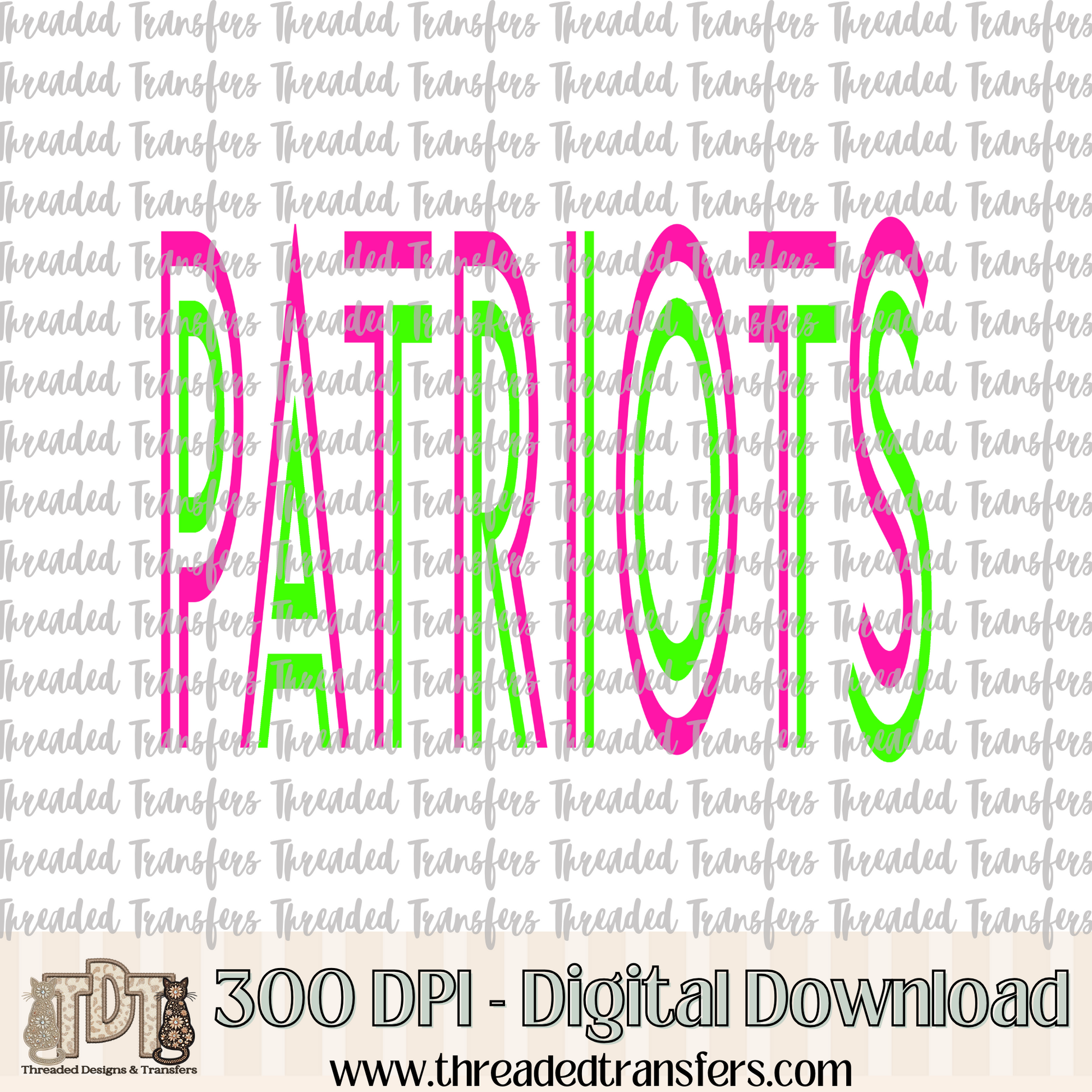 Vibrant Patriots Mascot Typography Digital Design Download (PNG Format - no product shipped)