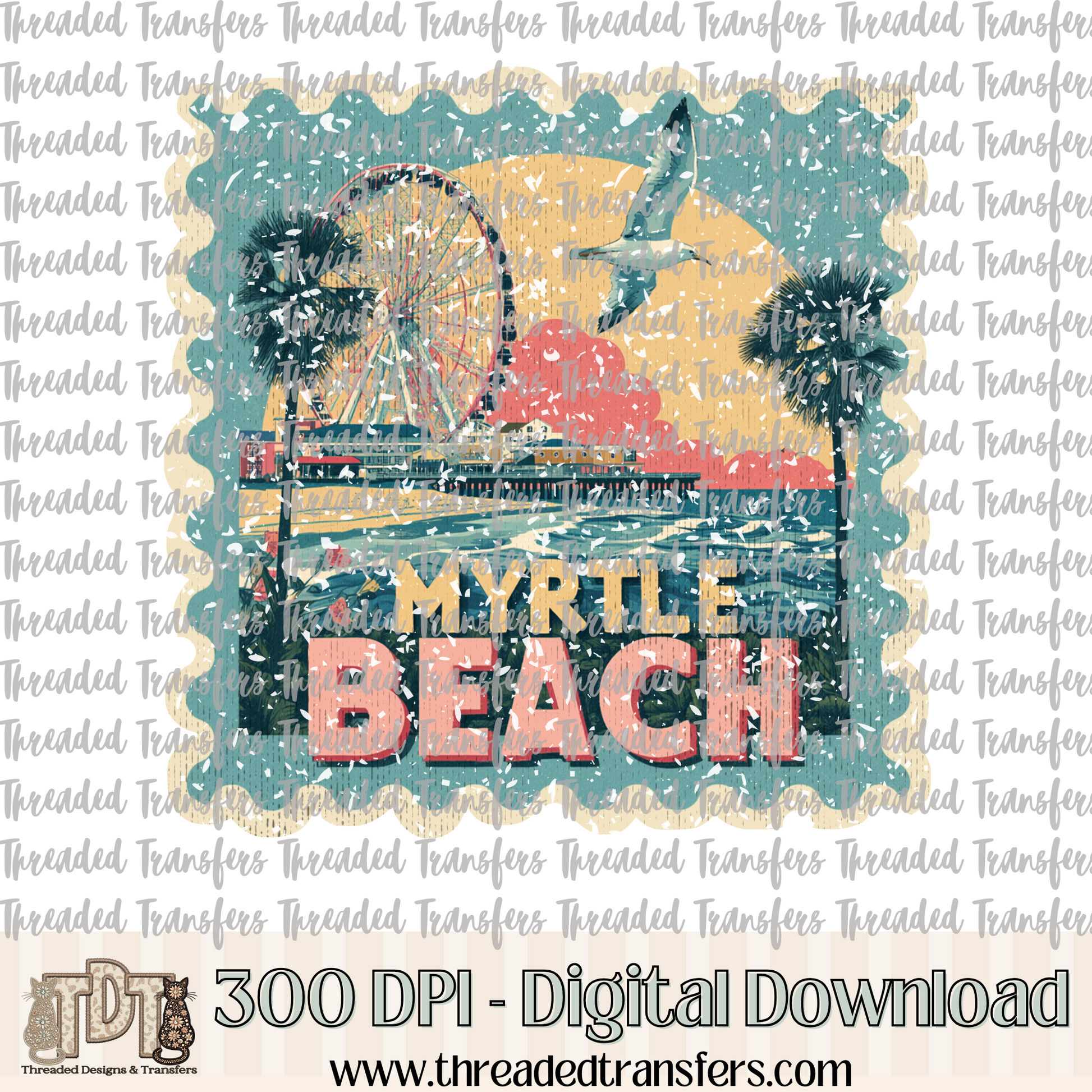 Vintage Myrtle Beach Stamp Digital Design Download (PNG Format - no product shipped)
